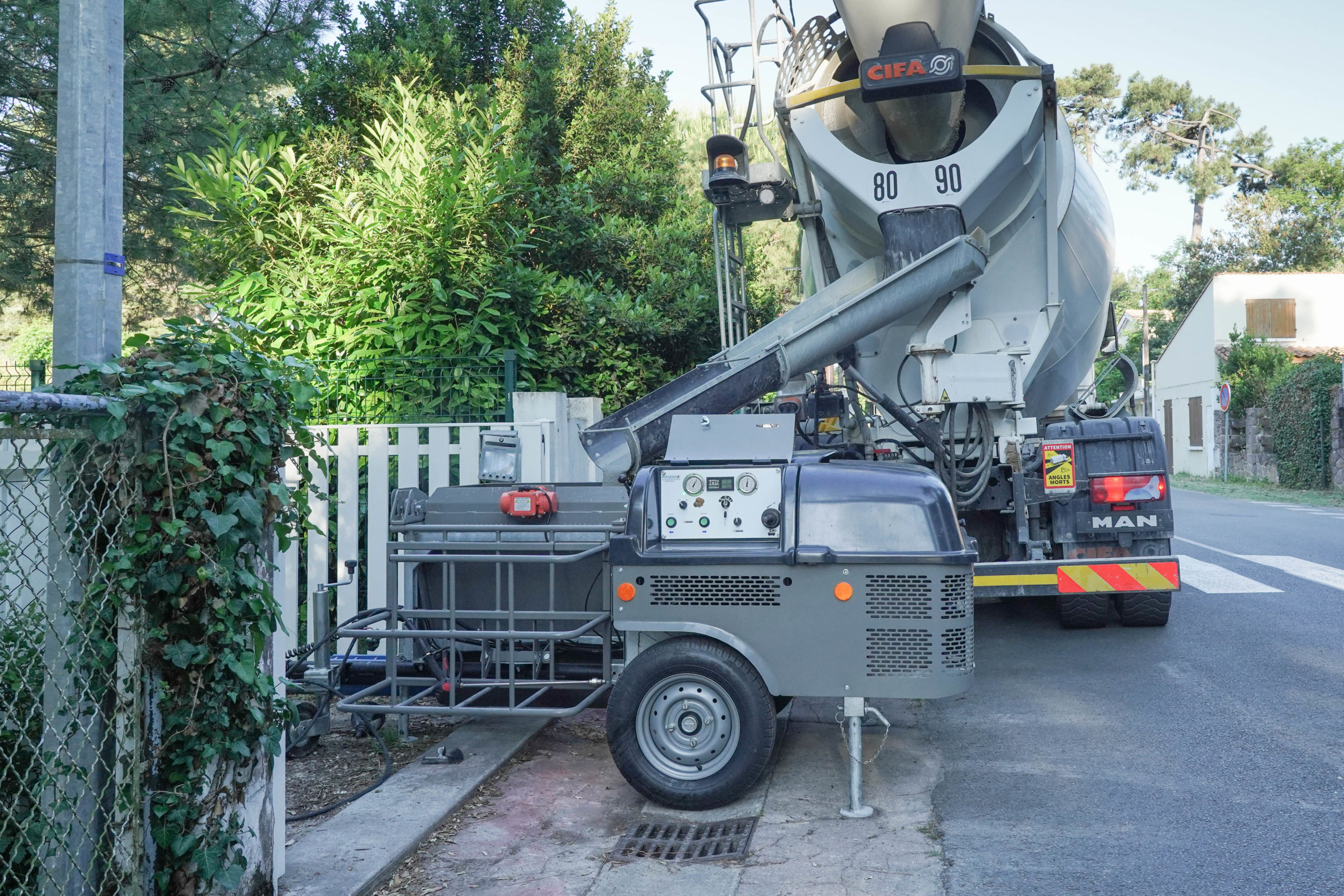 La machine peut être commandée depuis le tableau de bord ou à distance grâce à la radiocommande. L’opérateur peut agir sur le débit de la machine, la mise en route ou l’arrêt du pompage et aussi sur l’inversion de marche à l’endroit du coulage.